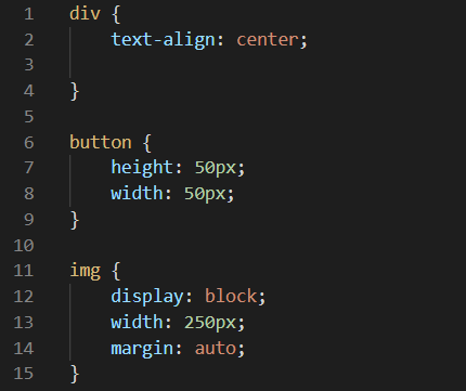 - This block will change the appearance of the buttons to a specific height and width of 50 pixels to make them squares.